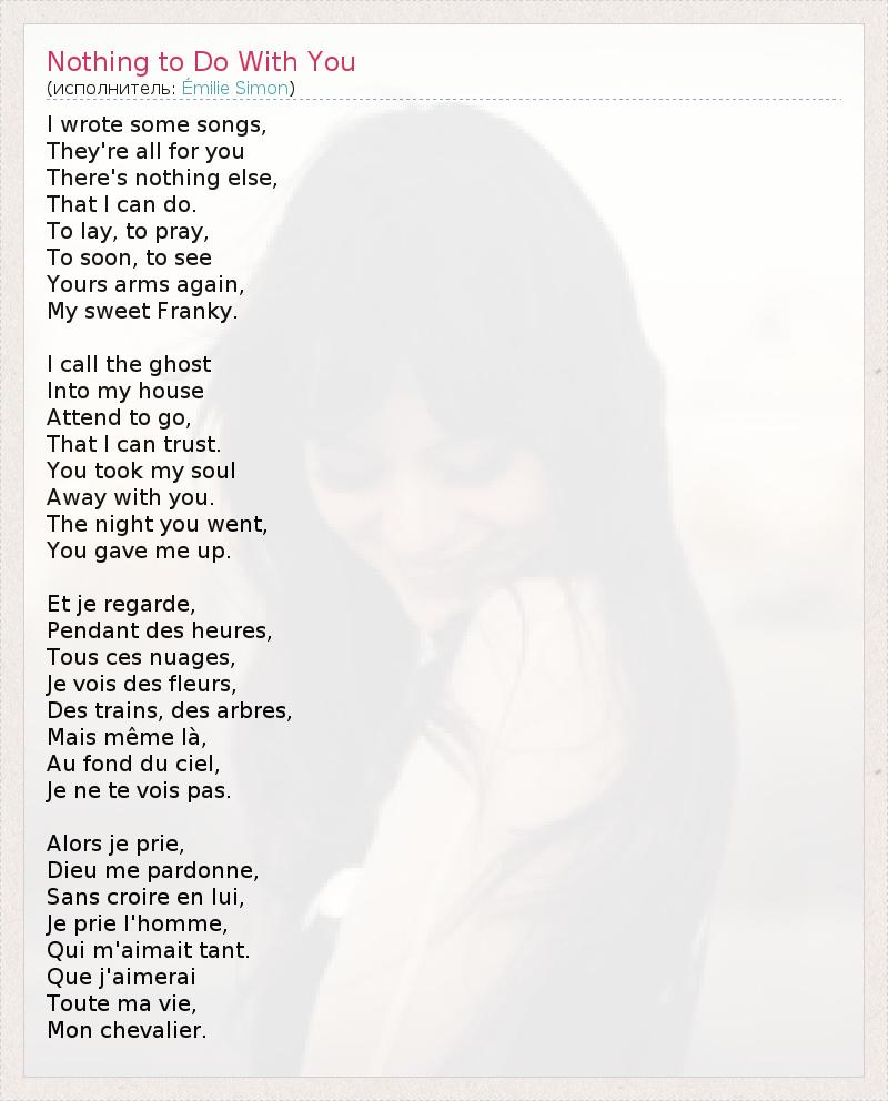 А как ты думаешь, о чем песня "Nothing to Do With You" ?