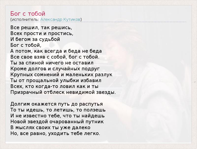 А как ты думаешь, о чем песня "Бог с тобой" ?