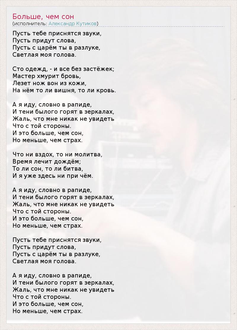 А как ты думаешь, о чем песня "Больше, чем сон" ?