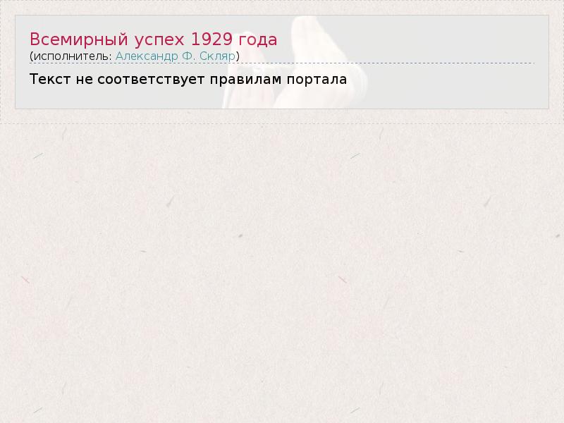 ГлавнаяИсполнителиАлександр Ф. СклярВсемирный успех 1929 года
