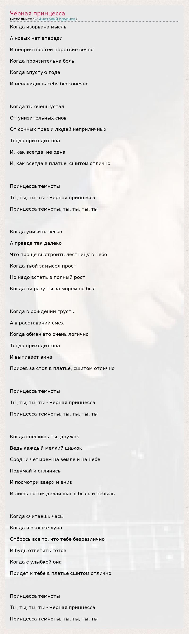 А как ты думаешь, о чем песня "Чёрная принцесса" ?