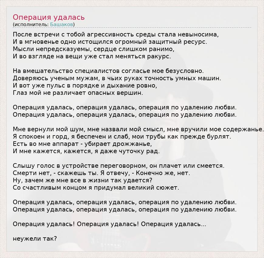 А как ты думаешь, о чем песня "Операция удалась" ?