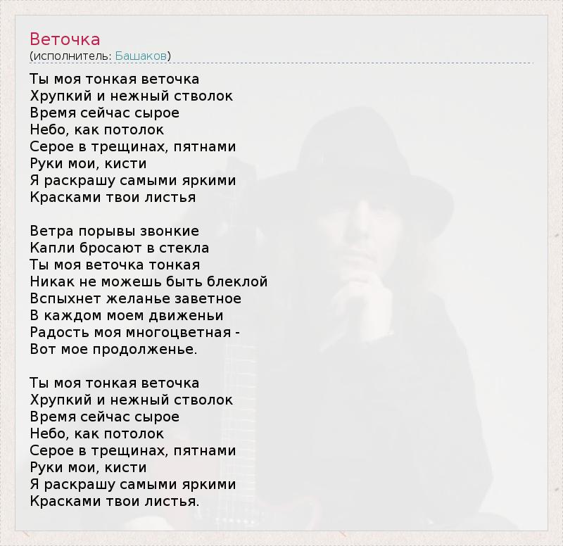 Это интересно:Для акустических и квартирных записей используйте тег Михаил БашаковСтарт творческой деятельности Михаила Башакова приходится на начало 80-х. Практически сразу у него возникла потребность в собственном коллективе. Сколько их было с тех пор, сосчитать довольно сложно… В 1987 г. Владимир Дух и Михаил Башаков образуют группу... продолжение