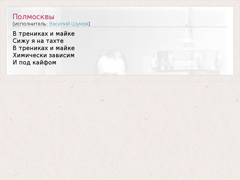 А как ты думаешь, о чем песня "Полмосквы" ?