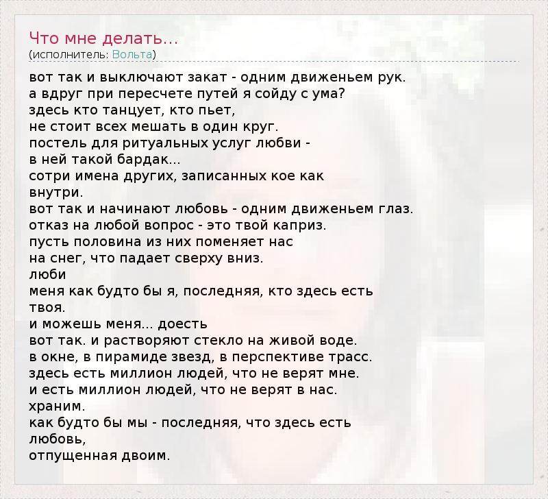 ГлавнаяИсполнителиВольтаЧто мне делать...
