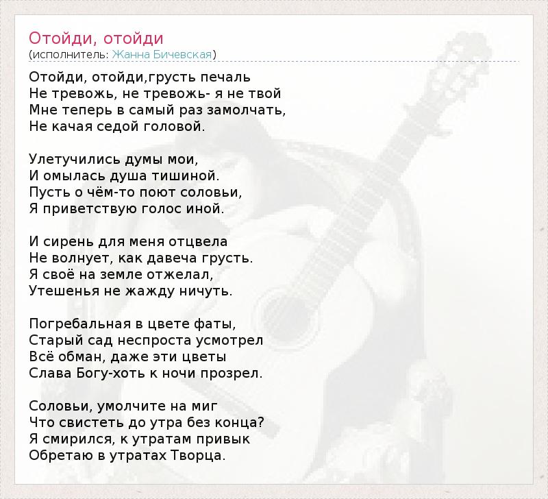 А как ты думаешь, о чем песня "Отойди, отойди" ?