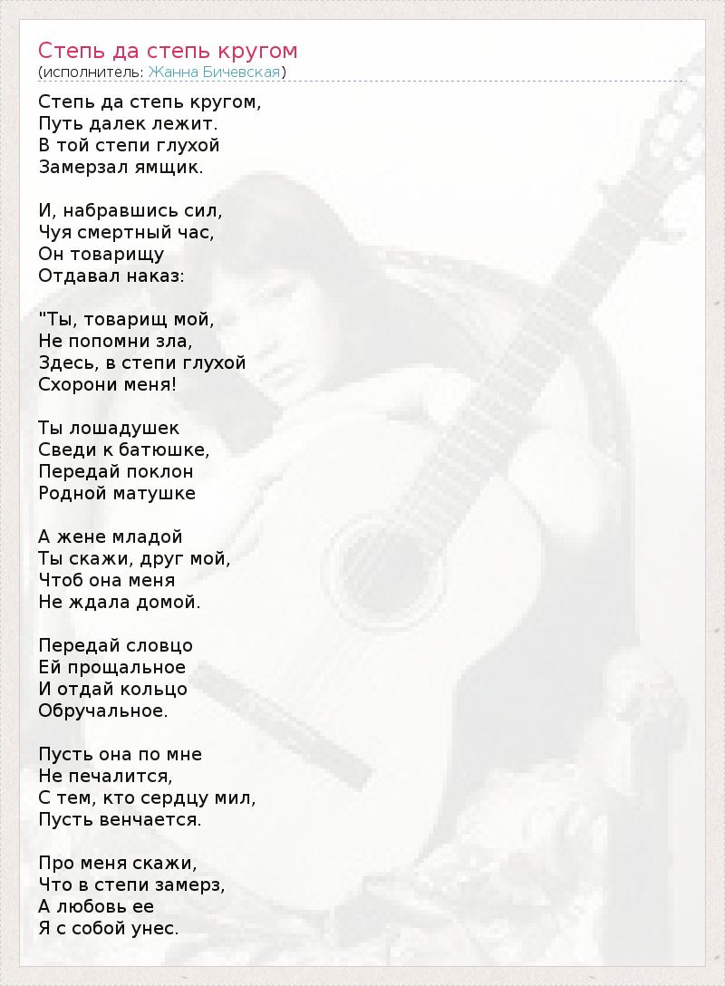 ГлавнаяИсполнителиЖанна БичевскаяСтепь да степь кругом