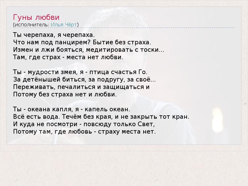А как ты думаешь, о чем песня "Гуны любви" ?
