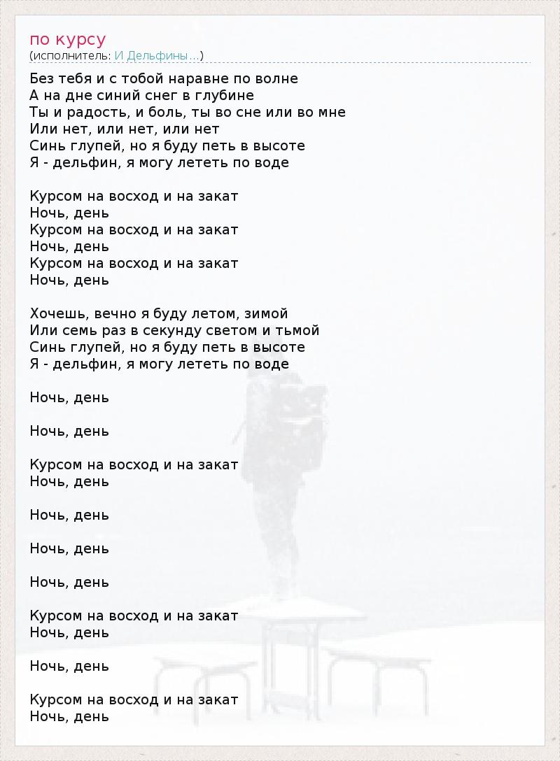 Это интересно:http://vk.com/anddolphinshttp://vk.com/id207928608я ничего не скажу прямо.как одинокий пи в лодочке, чудом спасшийся после дружеской встречи титаника и айсберга хэмингуэя, ищу потаенный смысл в каждой капле воды. он не придаёт значения жизни, знание аутентично аутофелляции. аутомобили, аутолюди с их ауточувствами. механическая любовь в переулках... продолжение