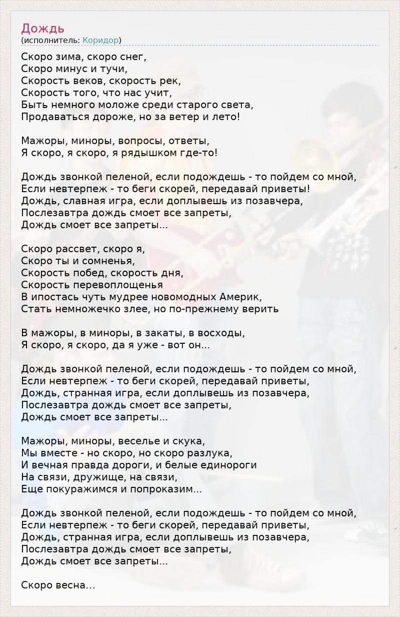 А как ты думаешь, о чем песня "Дождь" ?