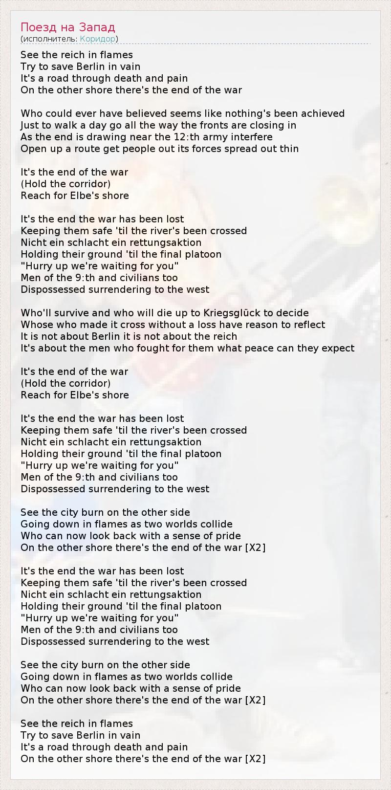 ГлавнаяИсполнителиКоридорПоезд на Запад