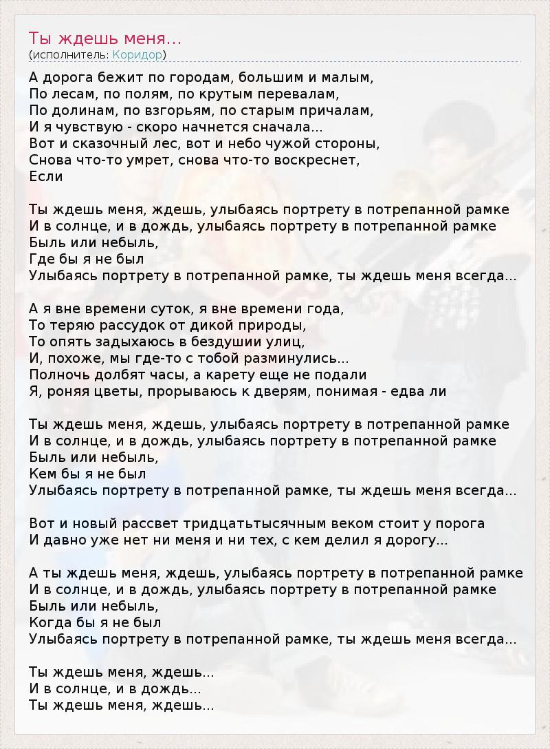 ГлавнаяИсполнителиКоридорТы ждешь меня...