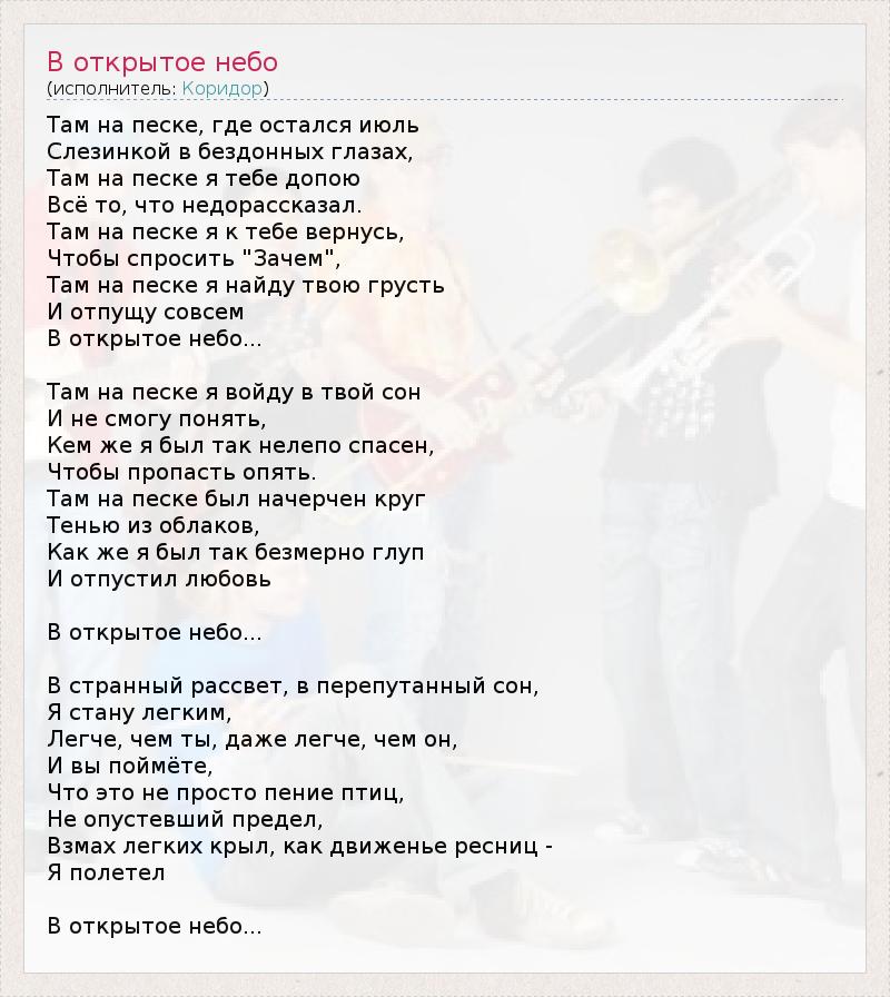 ГлавнаяИсполнителиКоридорВ открытое небо