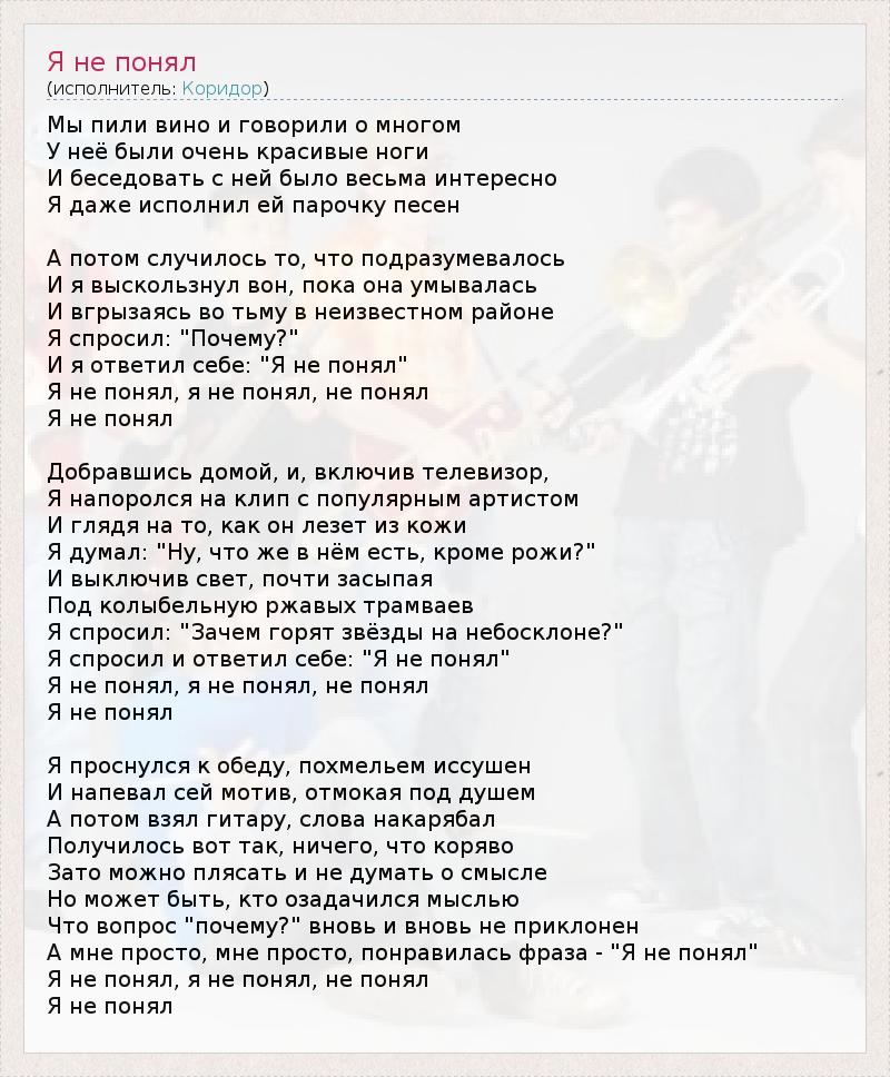 А как ты думаешь, о чем песня "Я не понял" ?