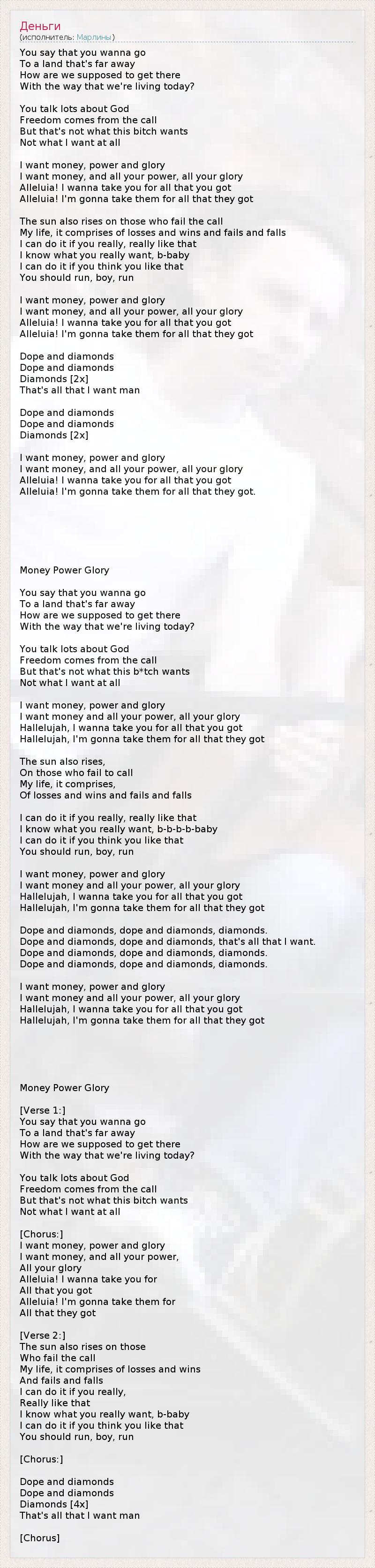 Деньги, власть, слава (перевод A-la fromage из  Новосибирска)