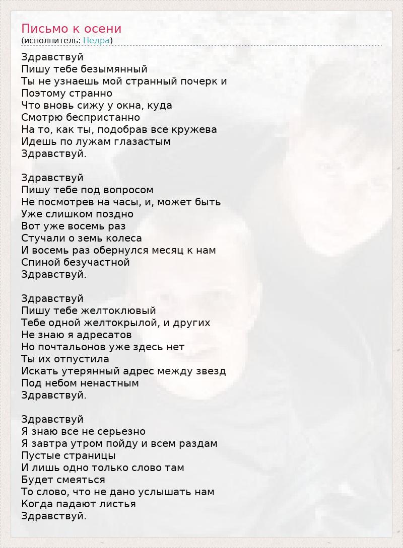 ГлавнаяИсполнителиНедраПисьмо к осени
