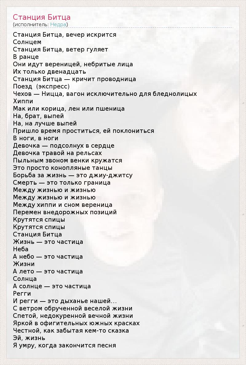 А как ты думаешь, о чем песня "Станция Битца" ?