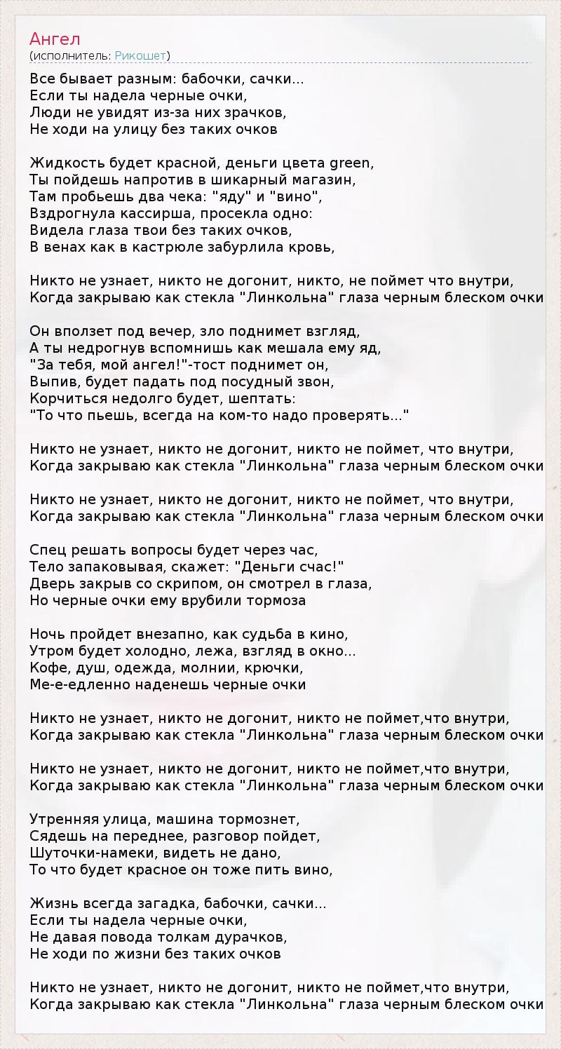 Когда закрываю как стекла "Линкольна" глаза черным блеском очки