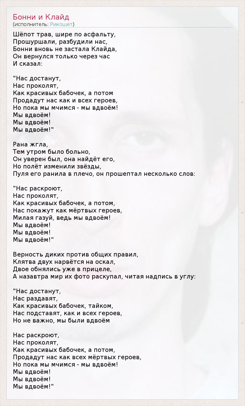 А как ты думаешь, о чем песня "Бонни и Клайд" ?