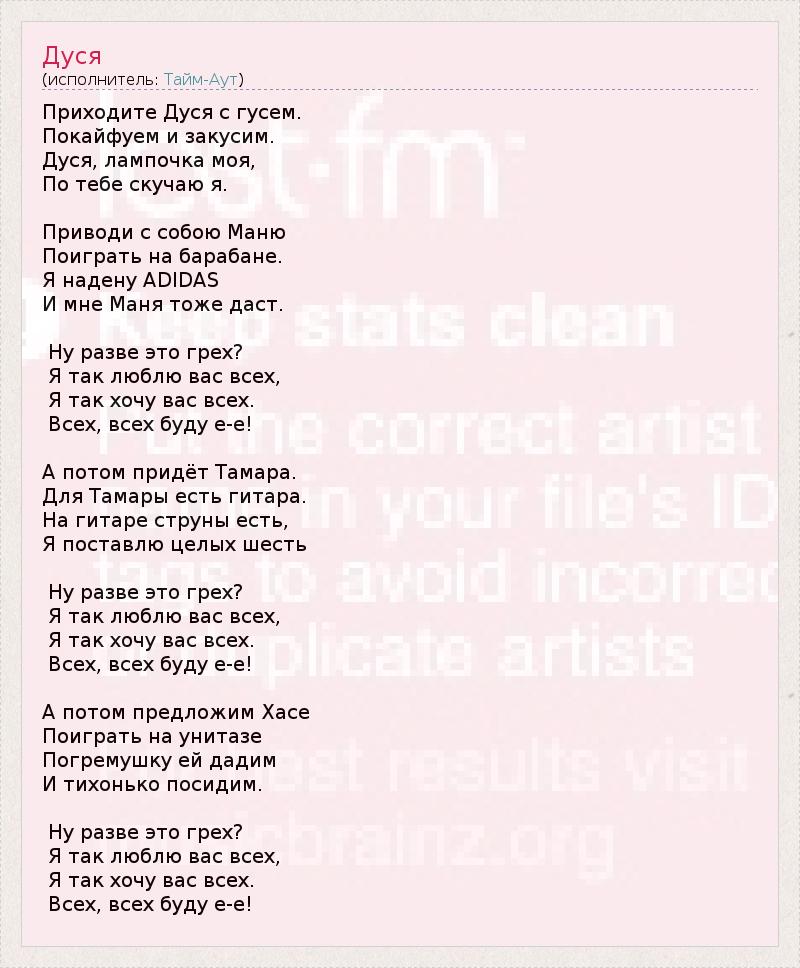 Улетали птицами гордыми минуты  Доставляет!(текст)  Tombe La Neige (с текстом песни)  Для танца(как резать - написано,  Скажи мне что такое любовь  KeshYou_Баллер  Так и скажи (wwwerger.ru) 2017  Мадам  La Inquietud... см. текст песни )  Cocaine (есть перевод текста)❤