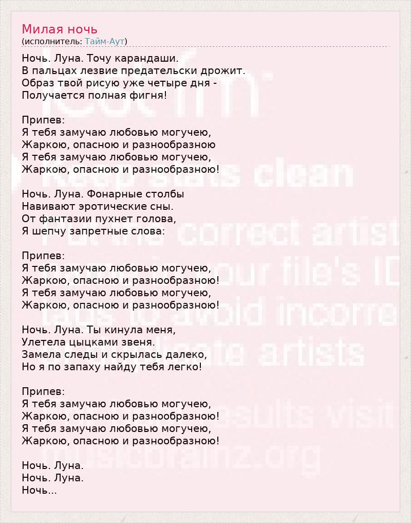 А как ты думаешь, о чем песня "Милая ночь" ?