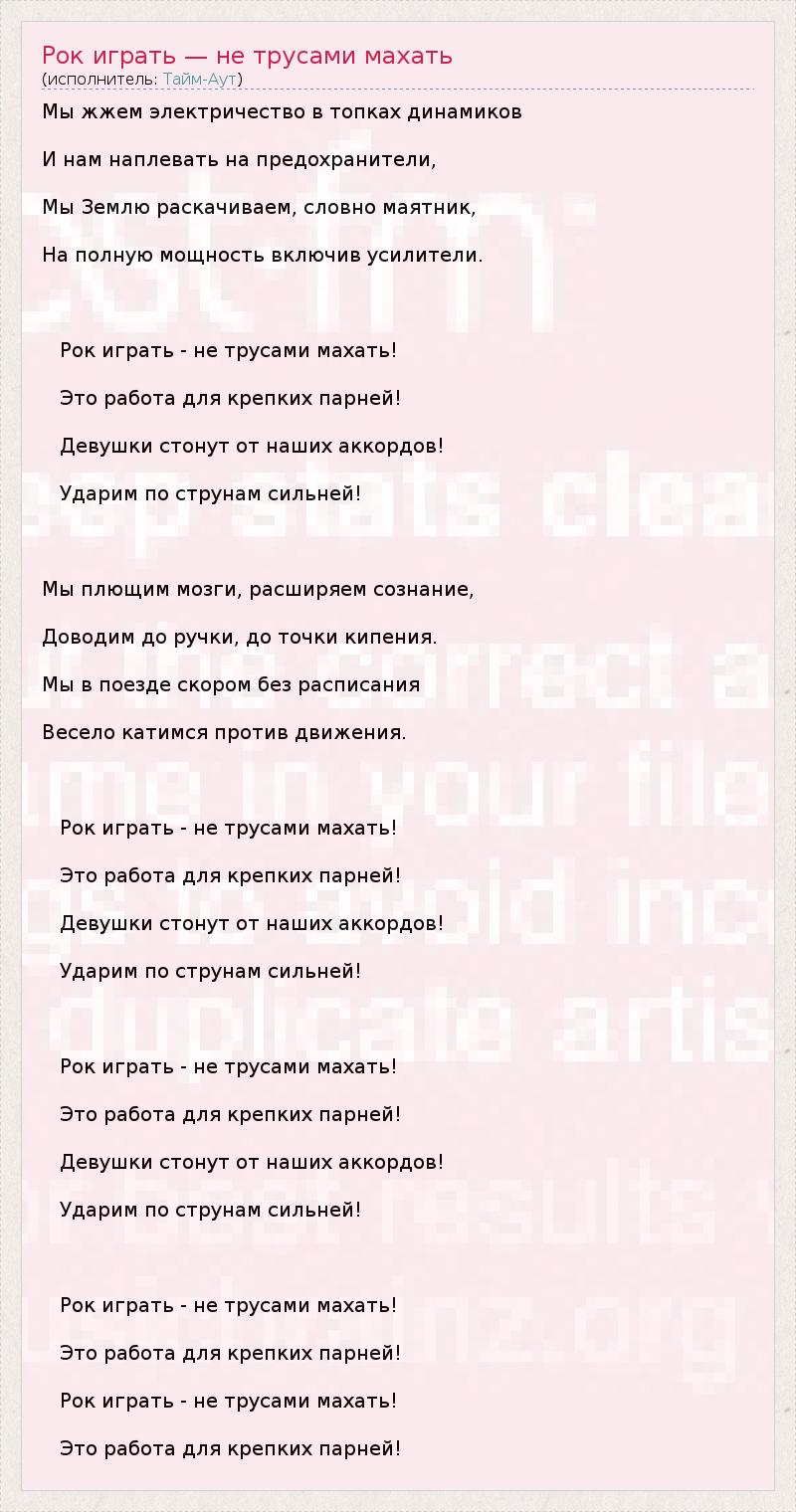 ГлавнаяИсполнителиТайм-АутРок играть — не трусами махать