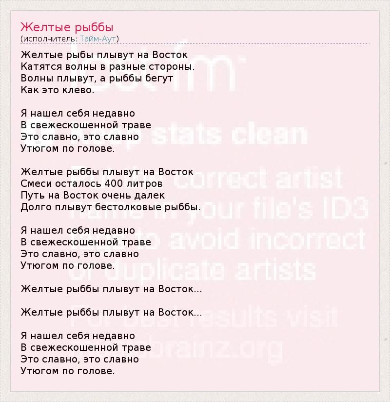 А как ты думаешь, о чем песня "Желтые рыббы" ?