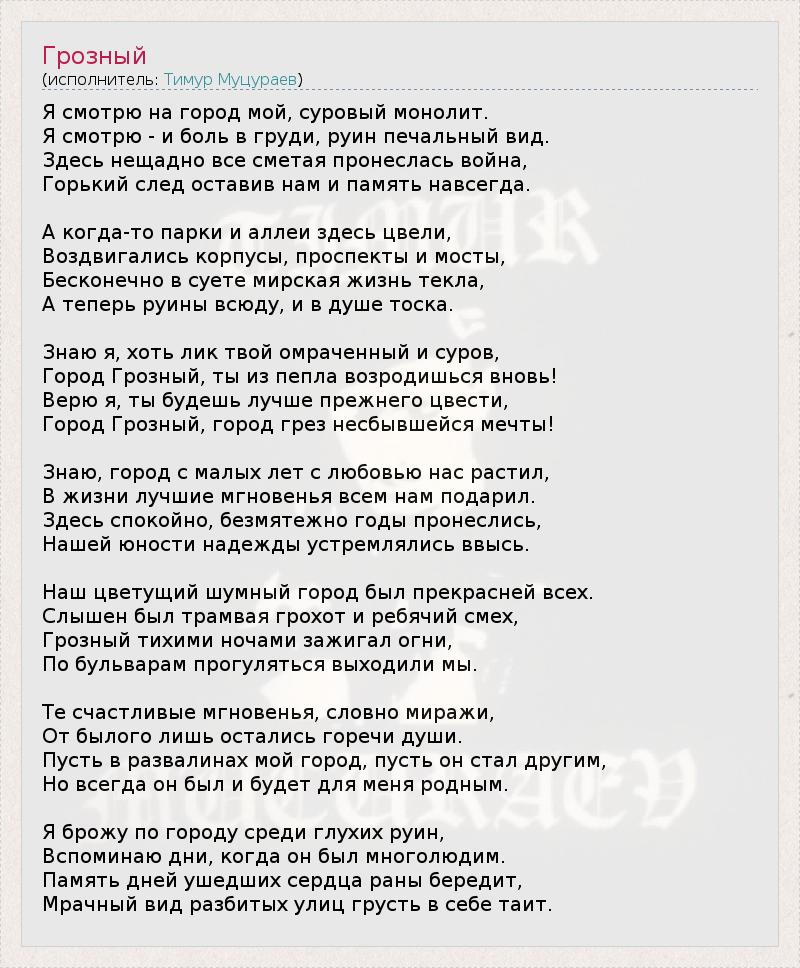 Это интересно:Автор и исполнитель песен. Родился 25 июля 1976 года в г. Грозном (родовое село — Новые Атаги). 1991 год — чемпион Чечено-Ингушетии по каратэ. В 1993 год — чемпион России. После начала Первой чеченской воевал в отряде Руслана Гелаева. Ранен под селом Сержень-Юрт. После окончания войны — в эмиграции (Турция). Был замечен на Украине во время выборов президента Украины в 2004 году. В настоящее время... продолжение