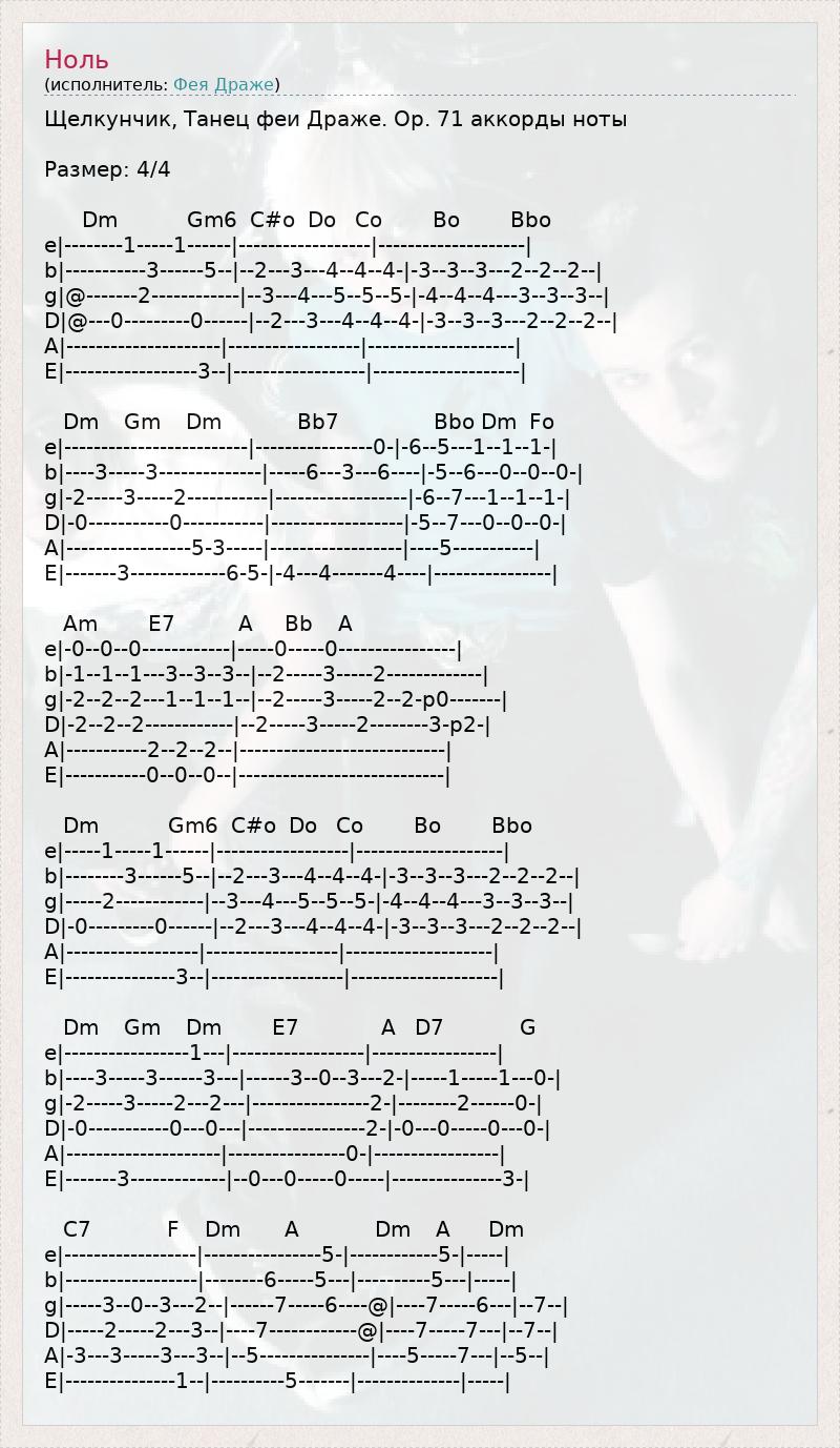 Щелкунчик, Танец феи Драже. Ор. 71 аккорды ноты