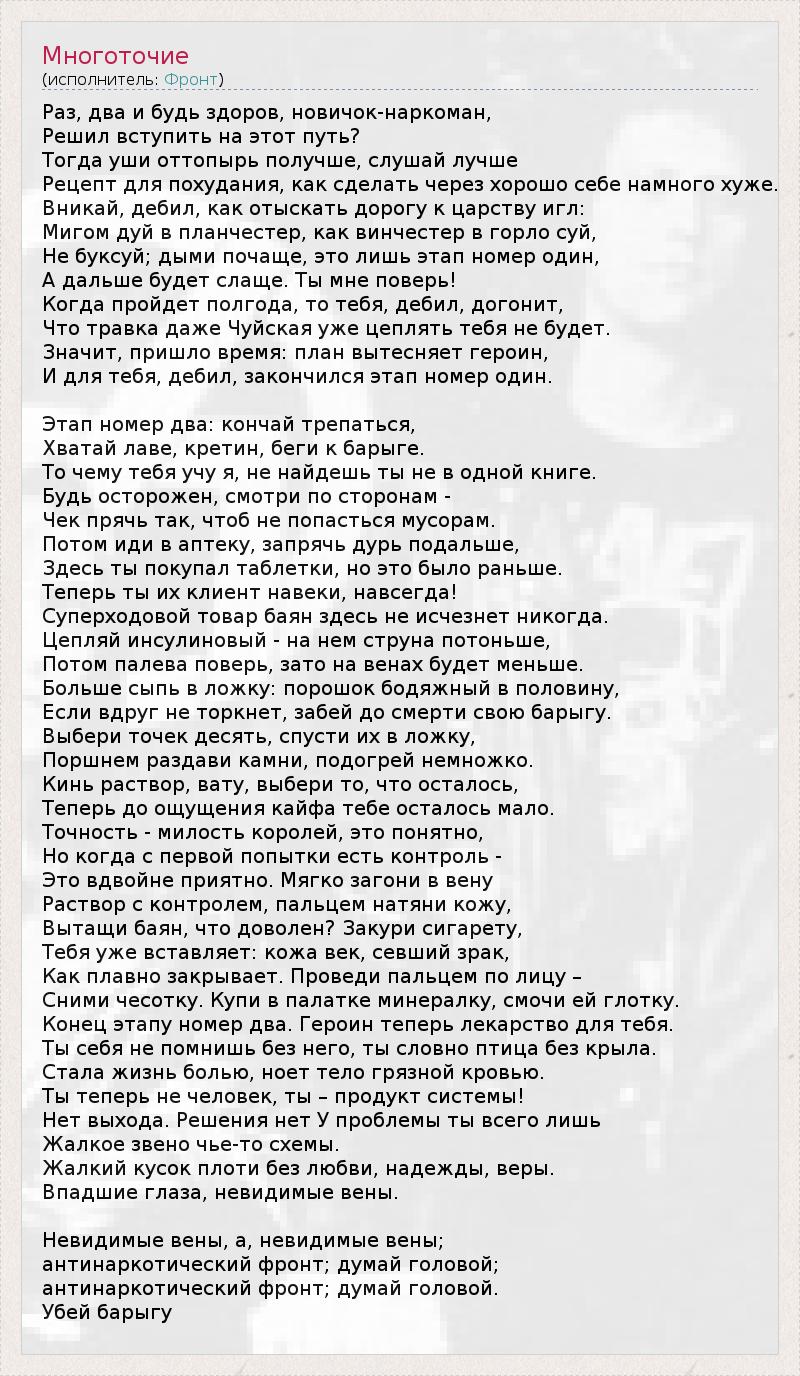 антинаркотический фронт; думай головой.