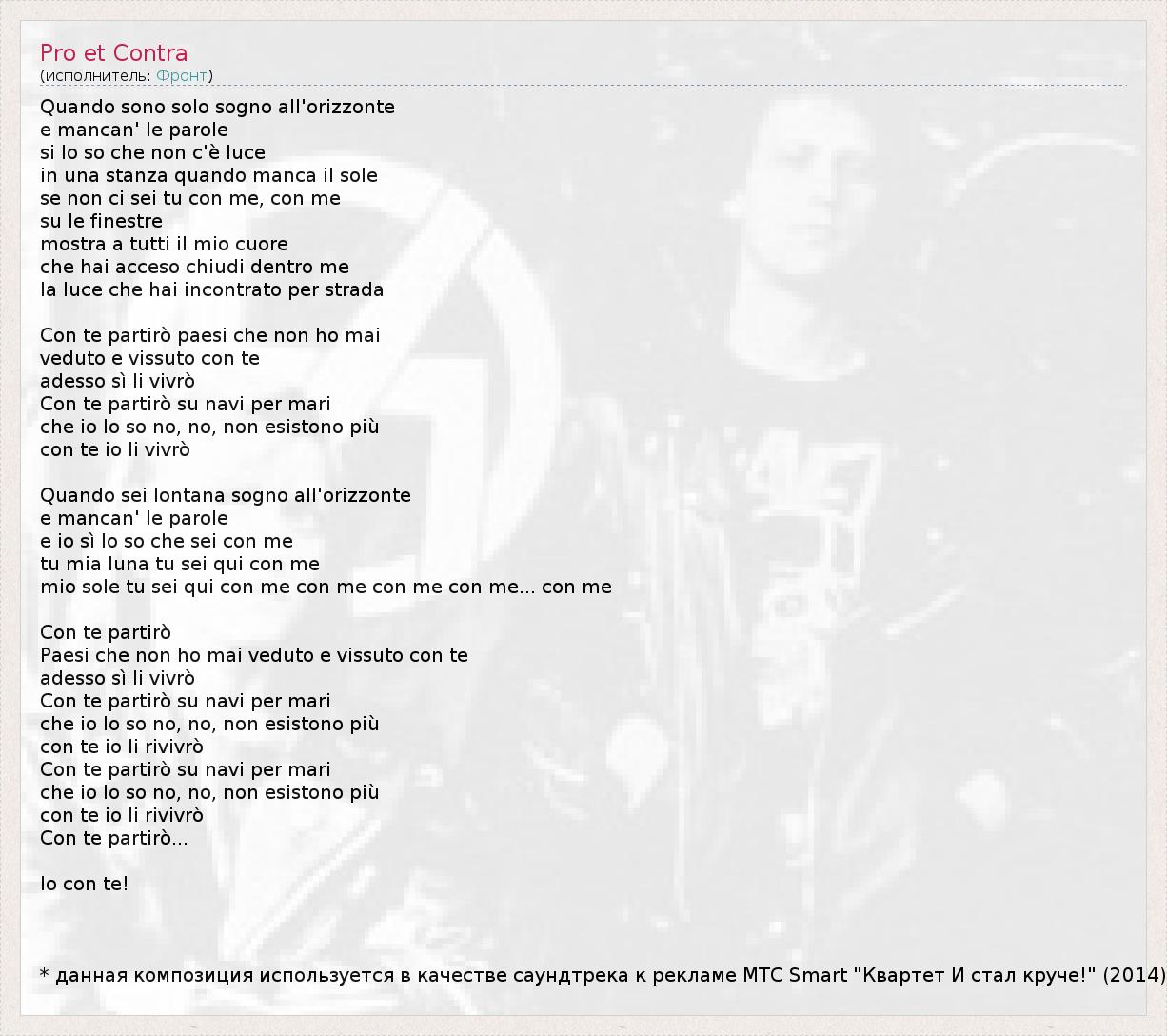 * данная композиция используется в качестве саундтрека к рекламе МТС Smart "Квартет И стал круче!" (2014)