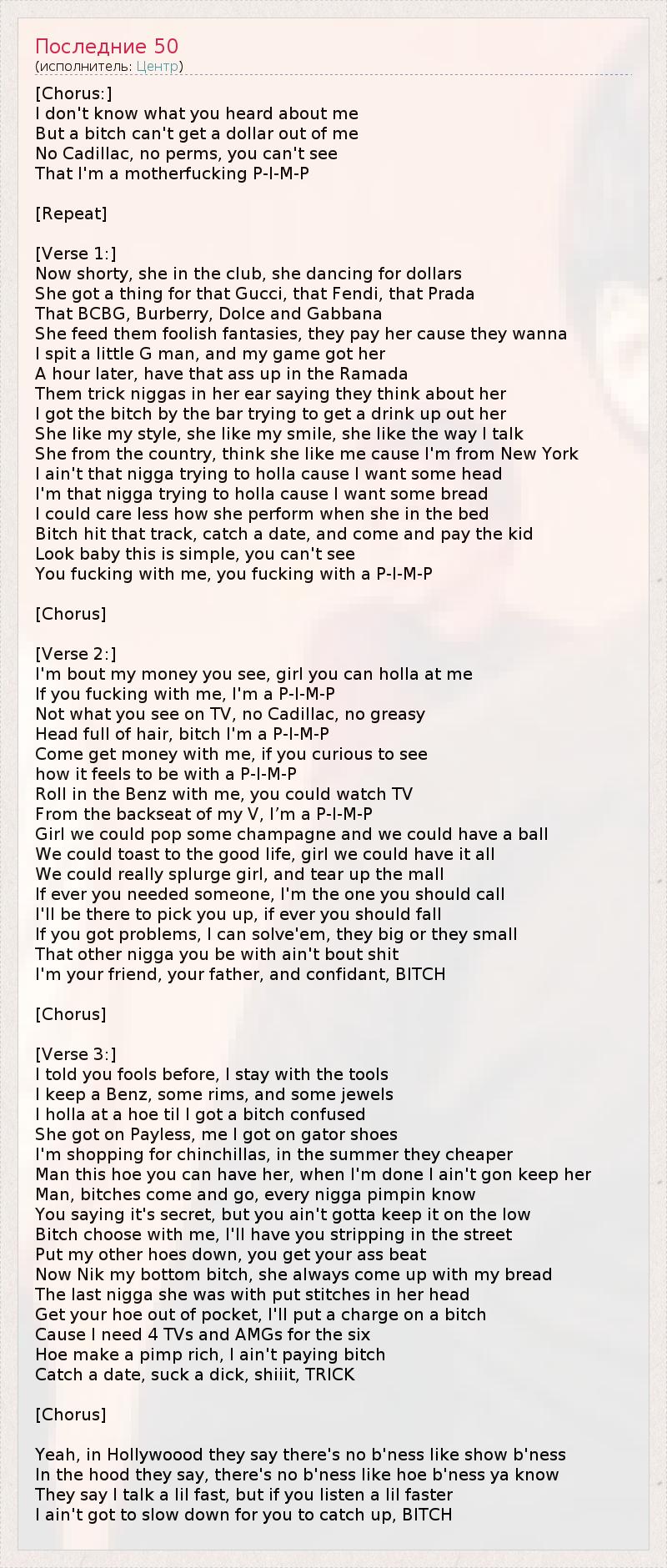 Но ты тра*****ся со мной, ты тра*****ся с С-У-Т-Е-Н-Ё-Р-О-М.