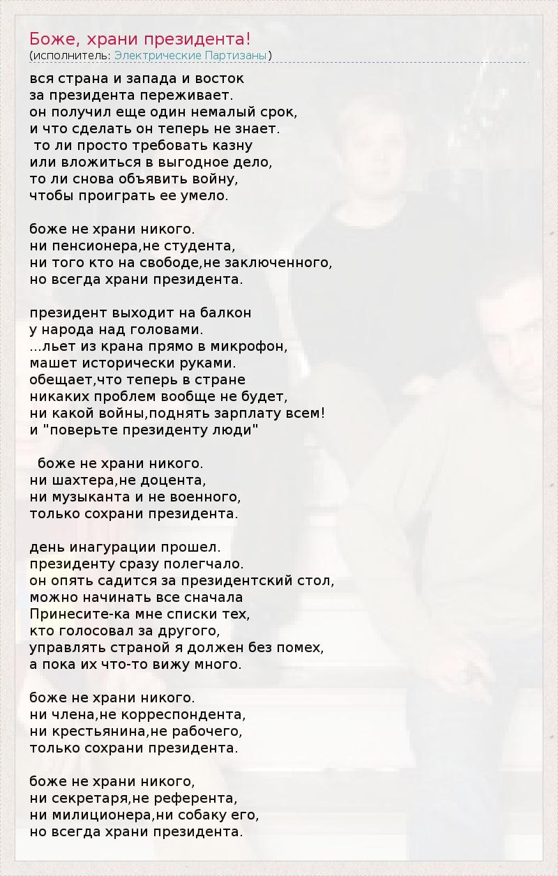 А как ты думаешь, о чем песня "Боже, храни президента!" ?