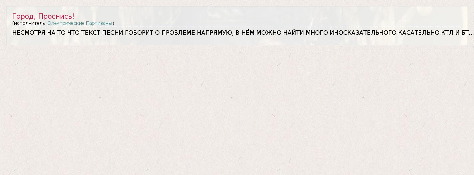 НЕСМОТРЯ НА ТО ЧТО ТЕКСТ ПЕСНИ ГОВОРИТ О ПРОБЛЕМЕ НАПРЯМУЮ, В НЁМ МОЖНО НАЙТИ МНОГО ИНОСКАЗАТЕЛЬНОГО КАСАТЕЛЬНО КТЛ И БТ...