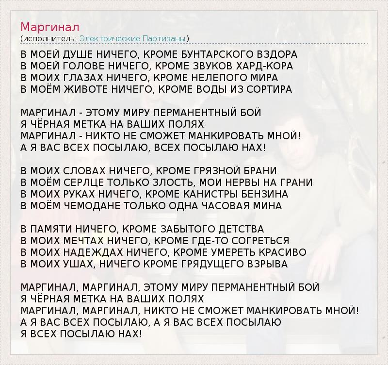 МАРГИНАЛ, МАРГИНАЛ, ЭТОМУ МИРУ ПЕРМАНЕНТНЫЙ БОЙ