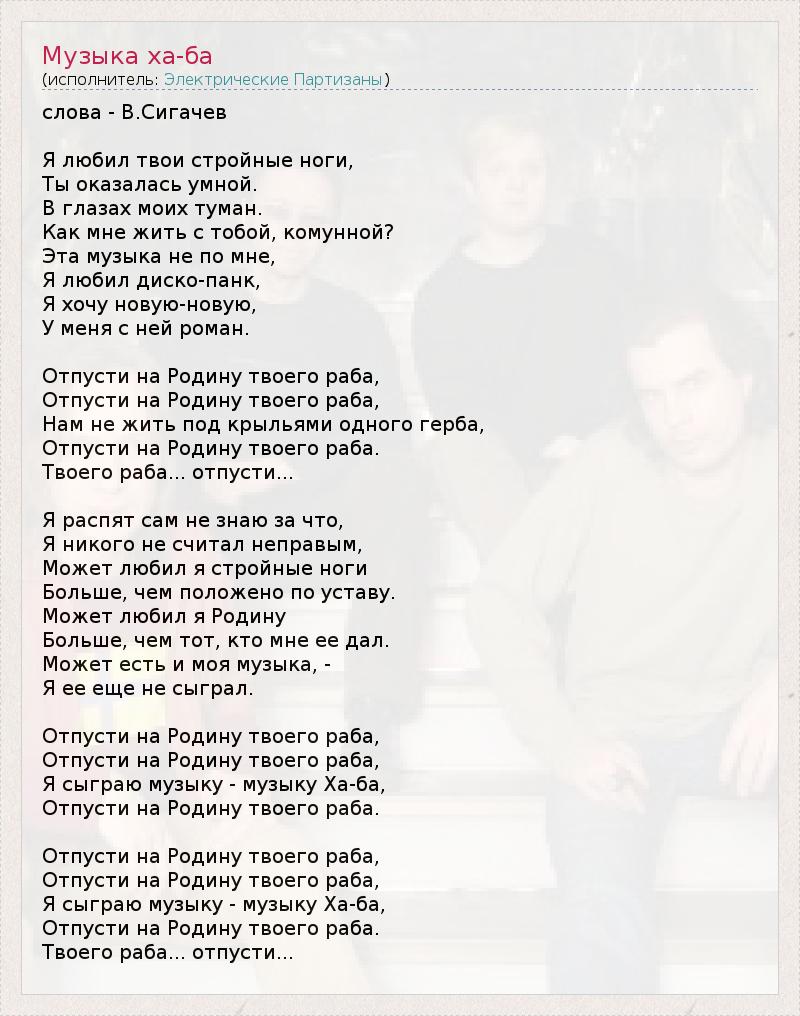 Песня Владимира Сигачёва – одного из основателей группы ДДТ. В конце 80-х, в момент взлета ДДТ к вершинам славы, он покинул группу и занялся новым андеграундным проектом. «Музыка Ха-Ба» входила в одноименный альбом его группы «Небо и Земля», в записи которого я принимал участие в далеком 1990 году. В середине 90-х Владимир Сигачёв пропал без вести. В тайные дали отправился он или сгинул в наркотическом подполье столицы – никто до сих пор не знает… Осталась музыка: несколько ярких сольных альбомов и ранние записи ДДТ. «Ха-Ба» переводится с древнего иврита примерно как «грядущее». В мечтах каждого музыканта всегда звучит музыка, которую он еще не сыграл. Музыка Ха-Ба…