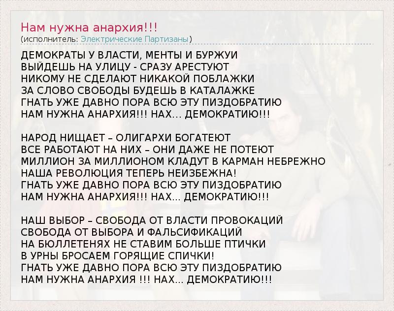 А как ты думаешь, о чем песня "Нам нужна анархия!!!" ?
