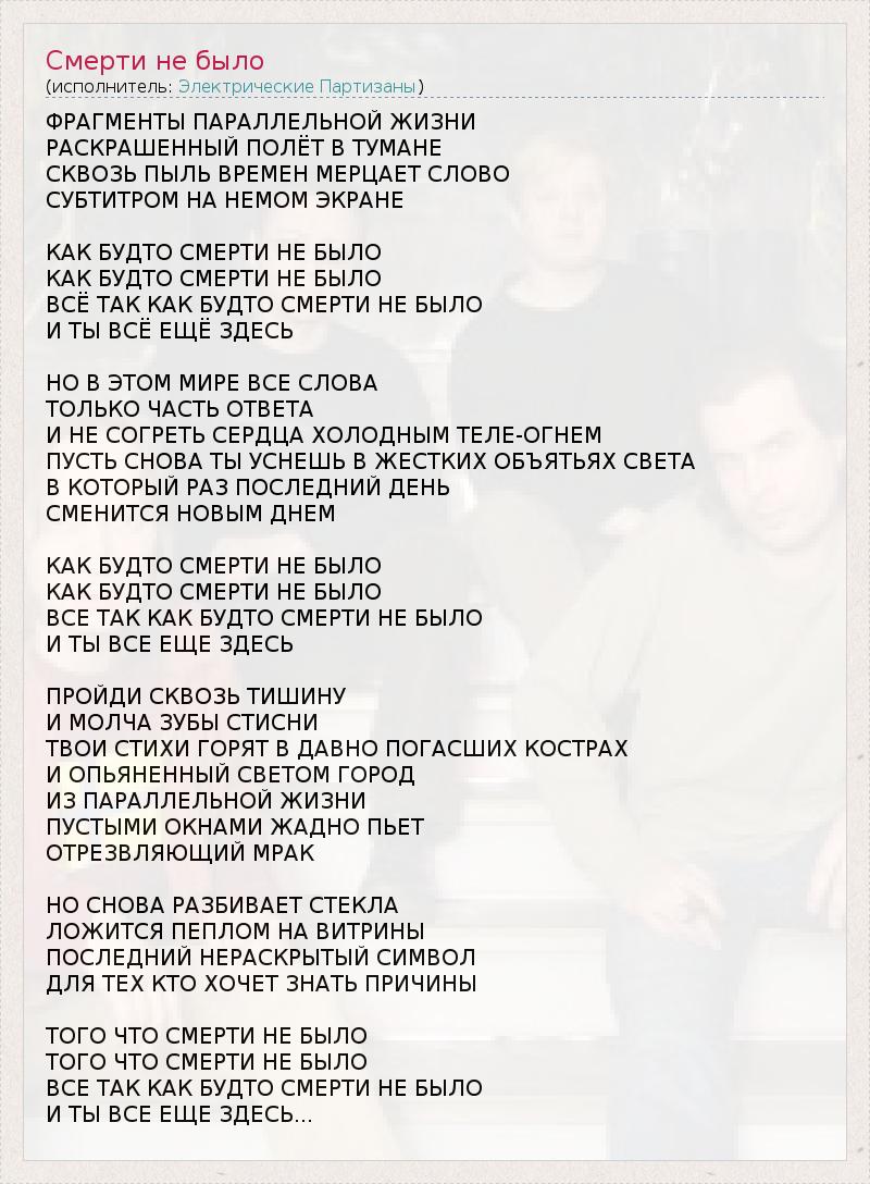 А как ты думаешь, о чем песня "Смерти не было" ?
