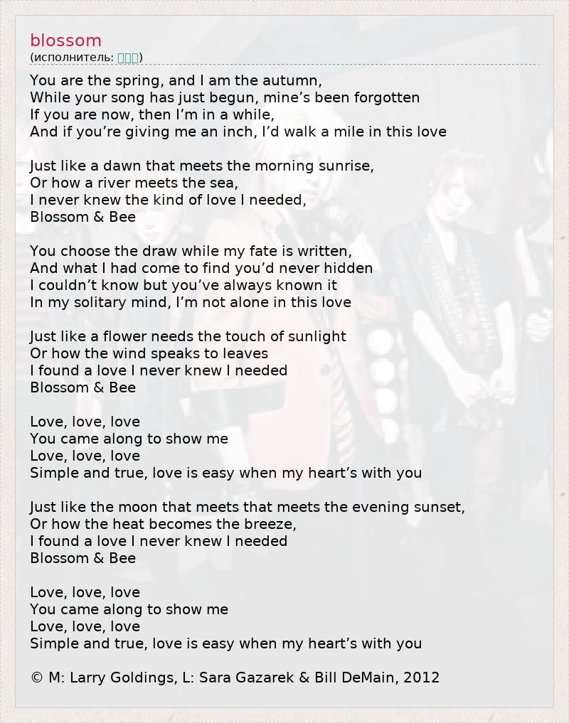 А как ты думаешь, о чем песня "blossom" ?