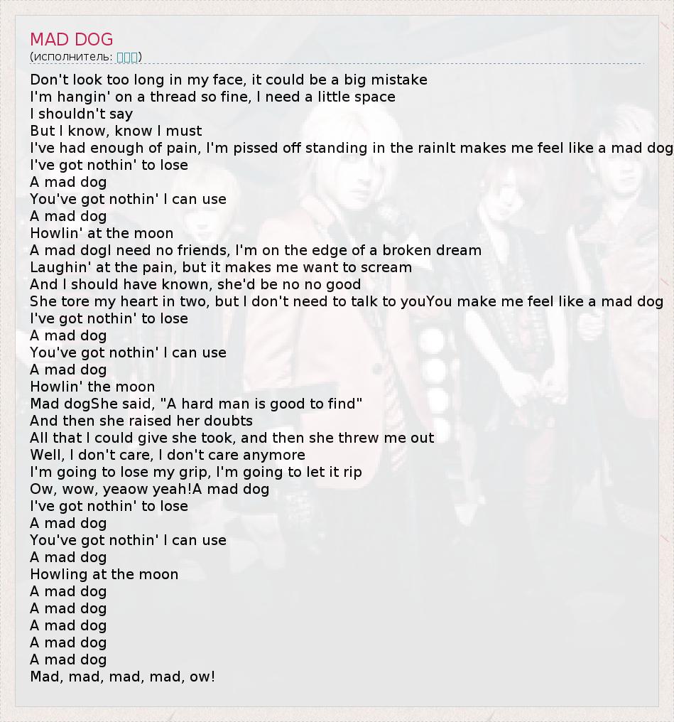 А как ты думаешь, о чем песня "MAD DOG" ?