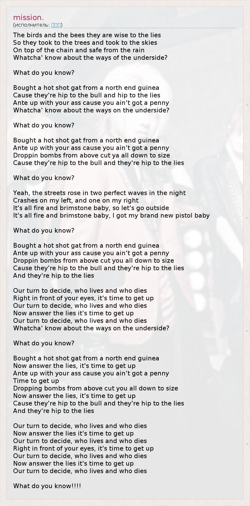 А как ты думаешь, о чем песня "mission." ?