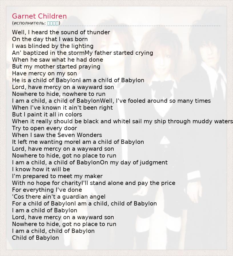 А как ты думаешь, о чем песня "Garnet Children" ?