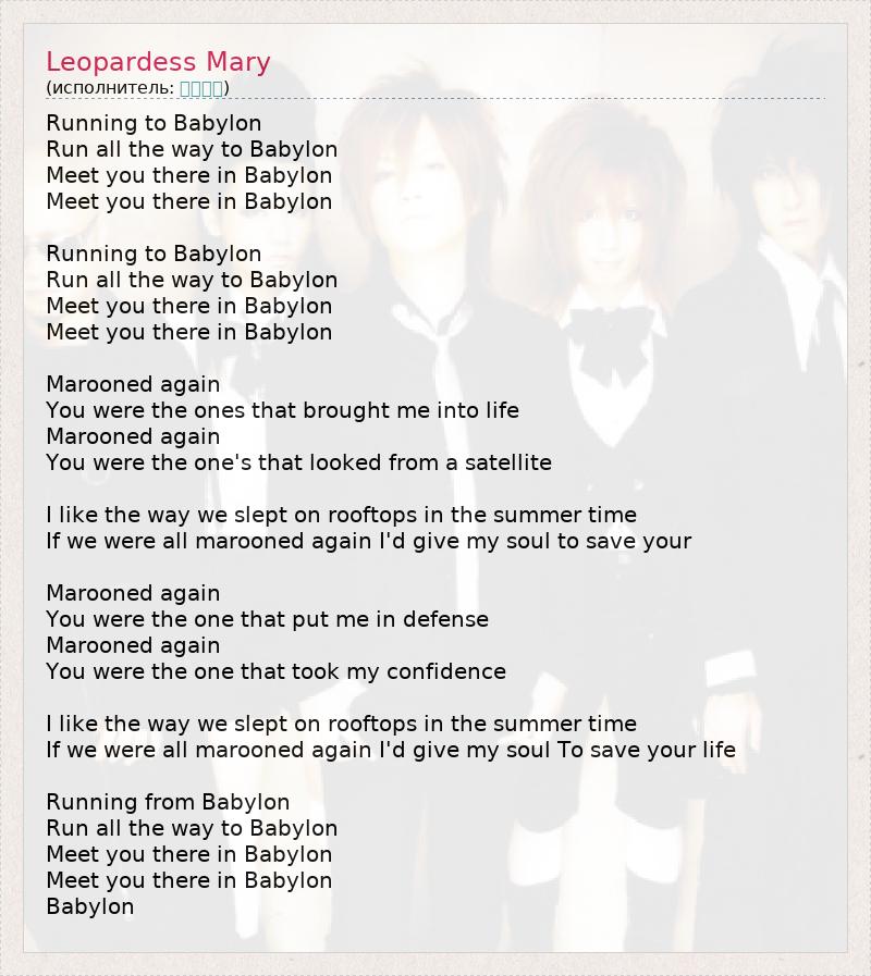 А как ты думаешь, о чем песня "Leopardess Mary" ?