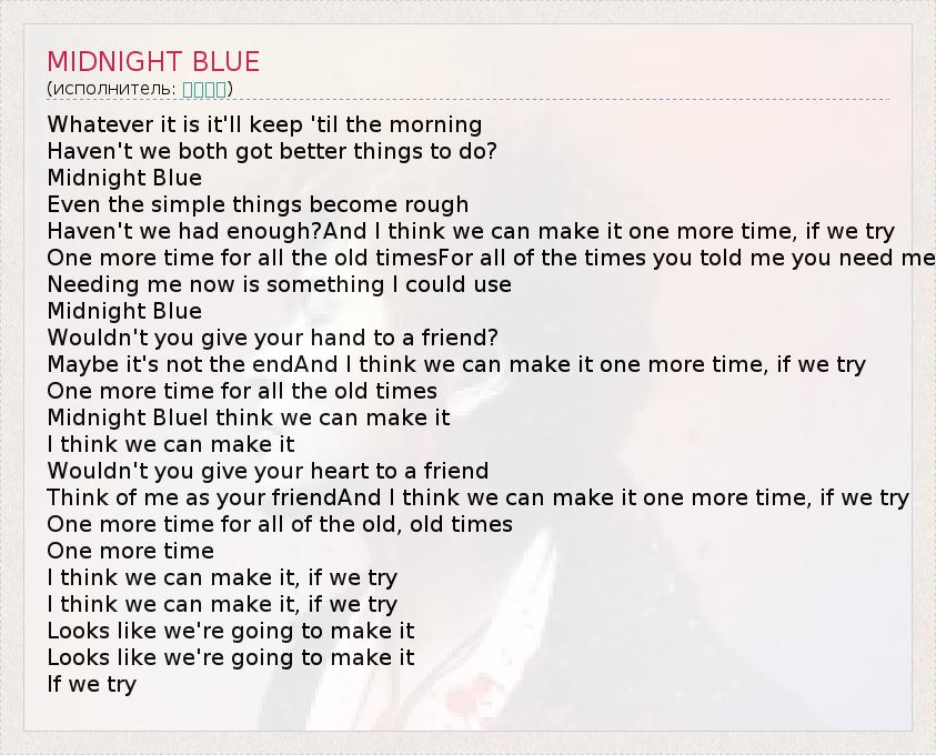 А как ты думаешь, о чем песня "MIDNIGHT BLUE" ?