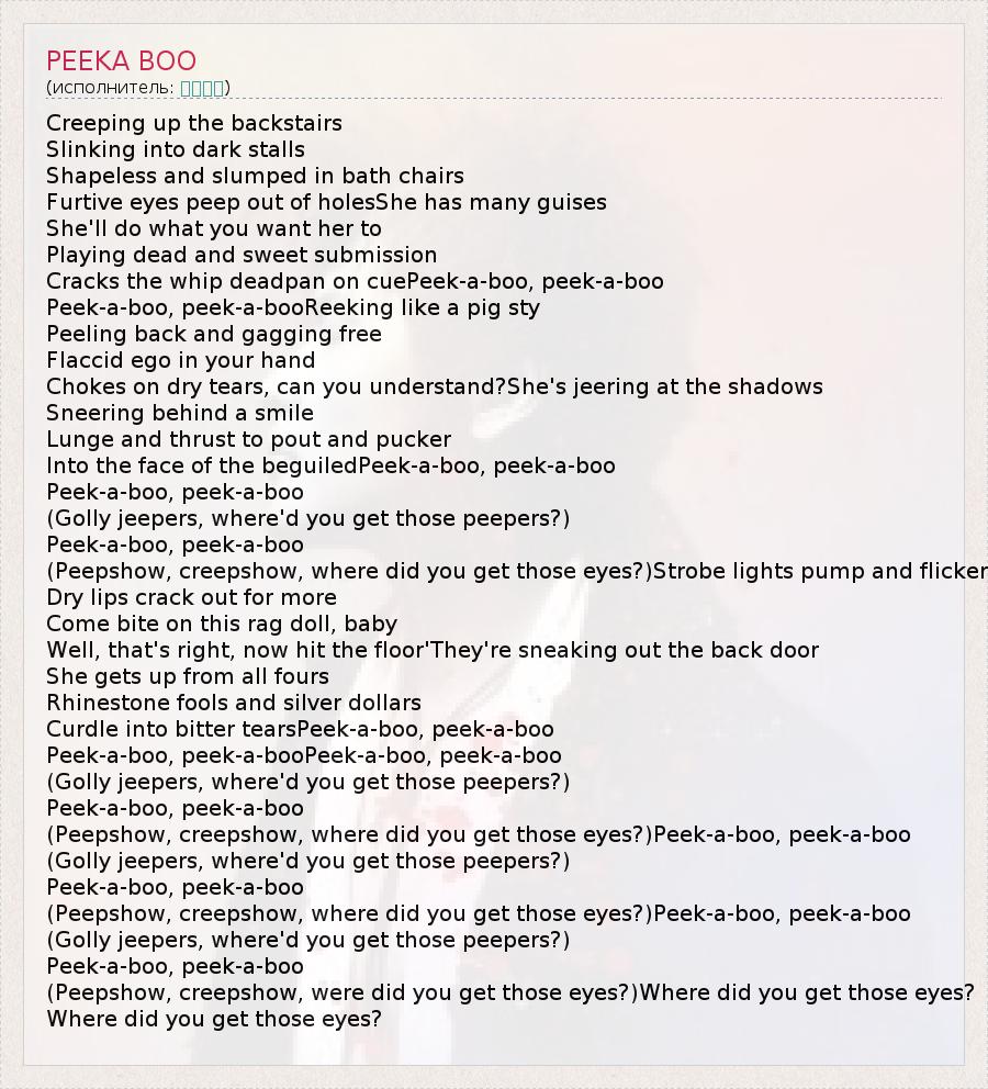А как ты думаешь, о чем песня "PEEKA BOO" ?