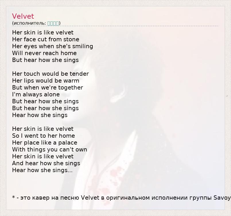 * - это кавер на песню Velvet в оригинальном исполнении группы Savoy