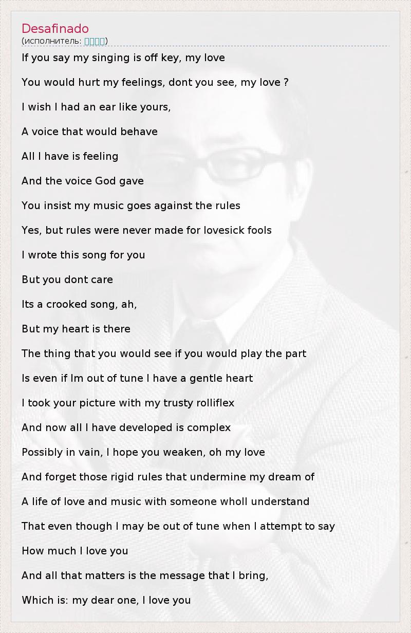 А как ты думаешь, о чем песня "Desafinado" ?