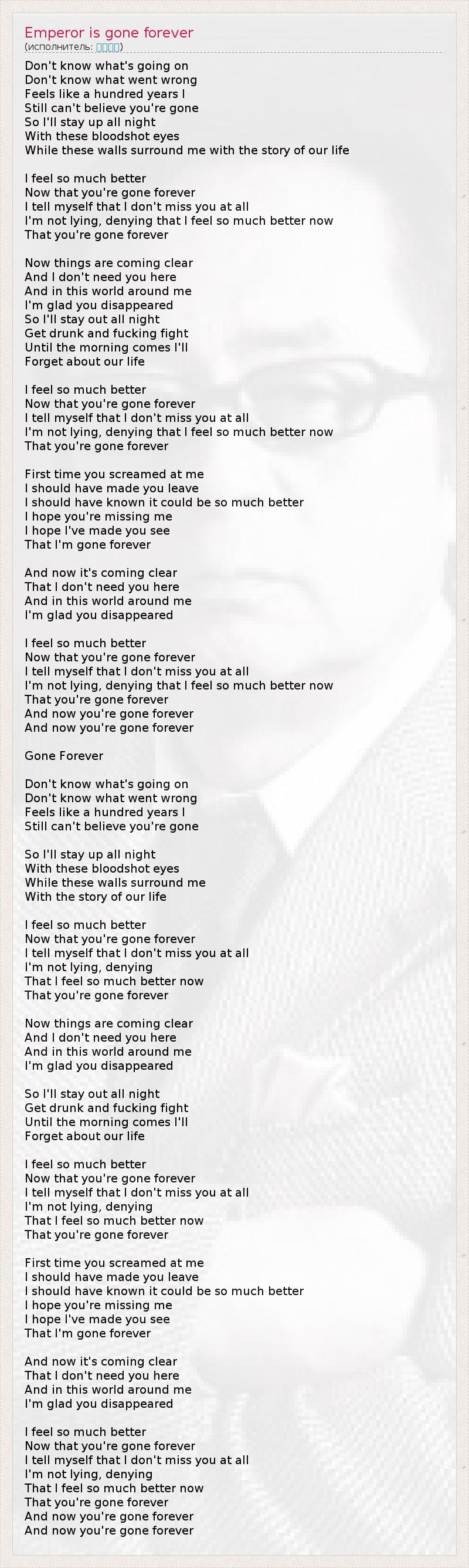 А как ты думаешь, о чем песня "Emperor is gone forever" ?