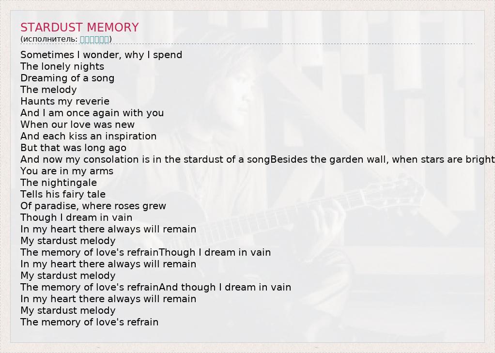 А как ты думаешь, о чем песня "STARDUST MEMORY" ?