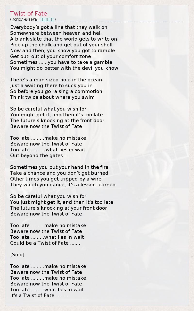 А как ты думаешь, о чем песня "Twist of Fate" ?